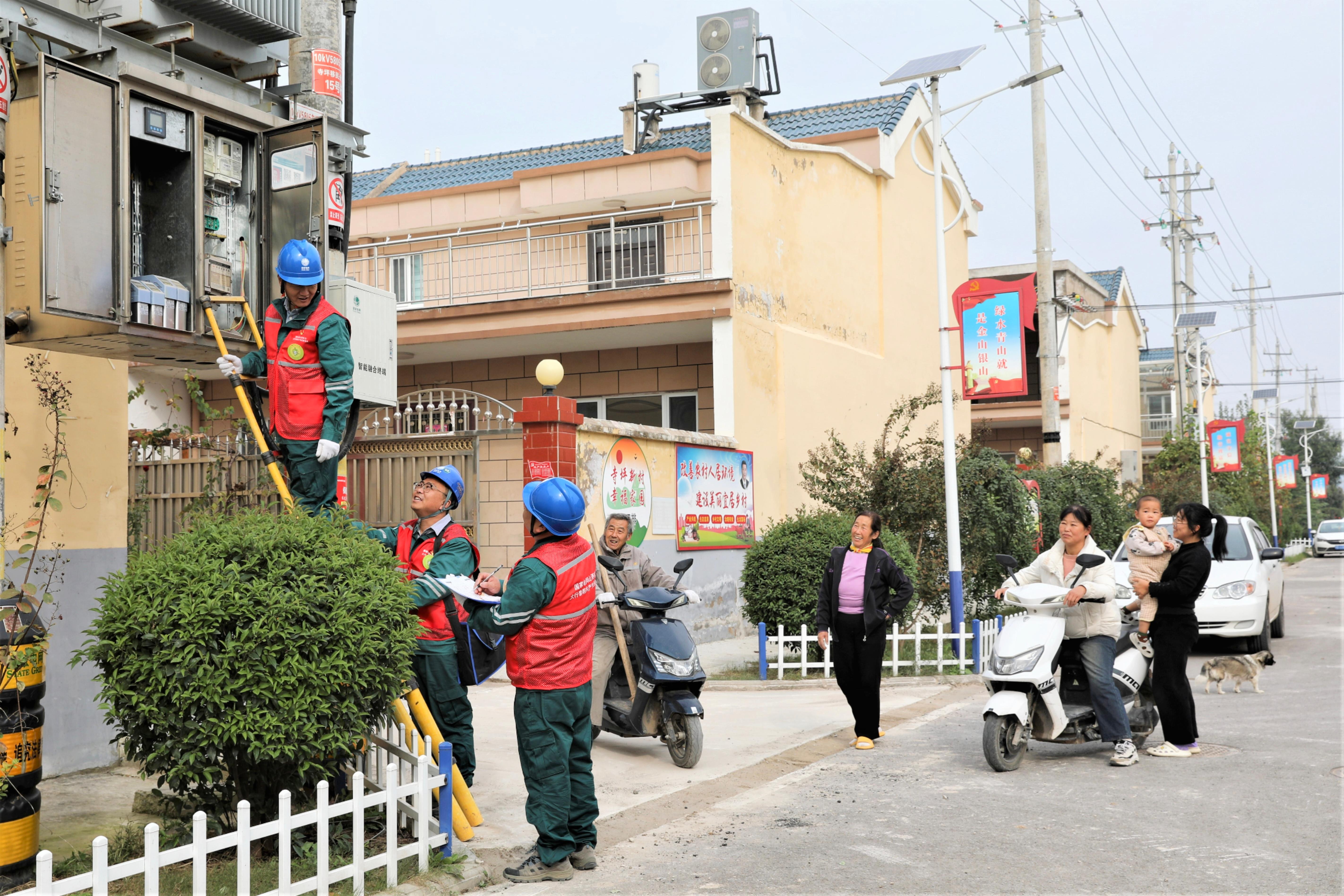 10月23日,國(guó)家電網(wǎng)山西電力(運(yùn)城平陸)太行黎明共產(chǎn)黨員服務(wù)隊(duì)隊(duì)員在寺坪移民新村檢查清潔取暖線路,確保冬季供暖用電安全可靠。